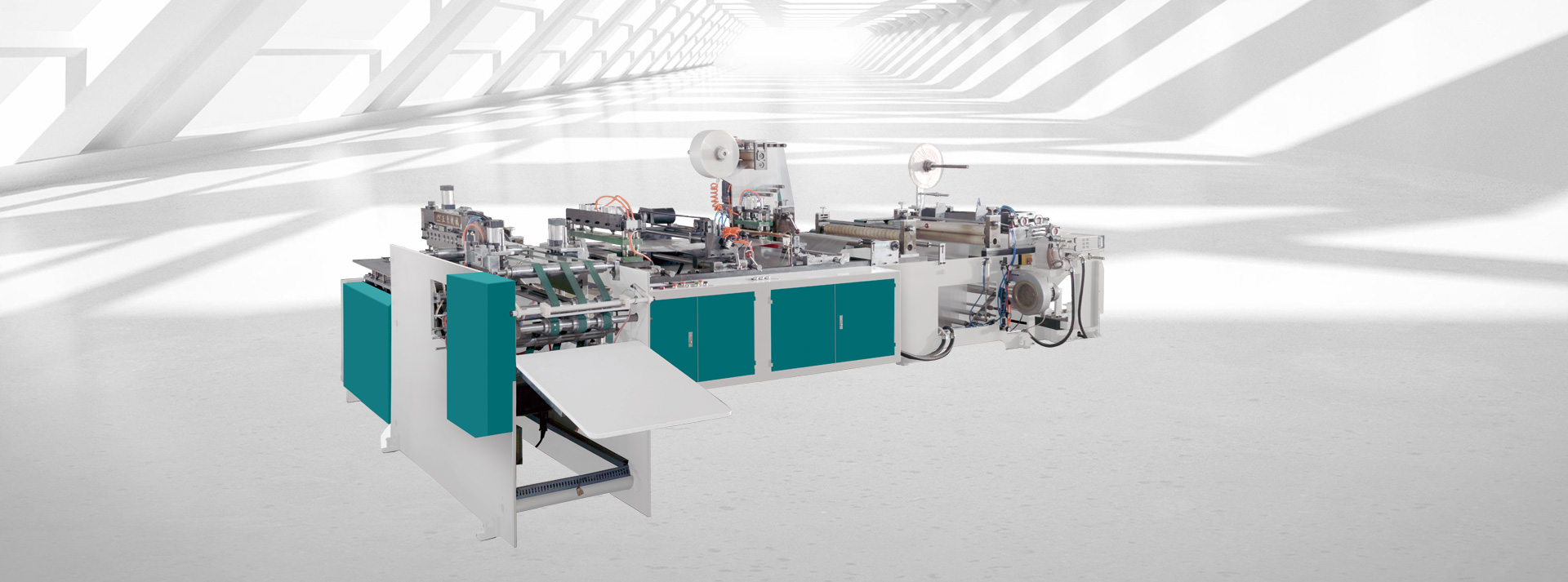 該機是一臺專業(yè)生產(chǎn)PP書皮袋(書套袋),采用PP片材卷料從放卷到成品全自動制作。